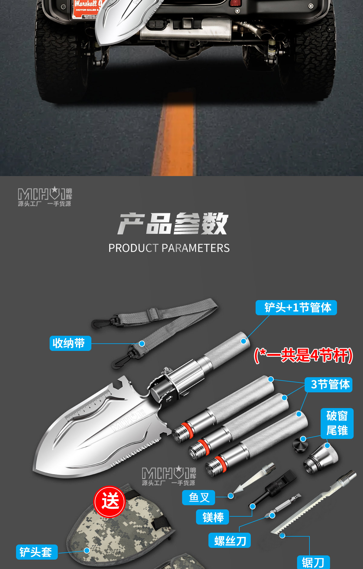 J89 Multifunction Tactical Shovel for Outdoor Camping Traveling Material: Stainless Steel + Aluminum Length: 85cm weight: 1100g blade size: 13x20cm Sent E-mail INQUIRY BASIC INFO J89 Multifunction Tactical Shovel for Outdoor Camping Traveling [Next Product]→: J99 Portable Folding Shovel Multi Purpose Steel Spade Multifunction Tactical Shovel Outdoor for Camping Traveling RELATED G30 heavy duty Stainless Steel Aluminum Tactical Shovel Multifunction shovel sets G31 J36 stainless steel aluminum handle folding camping shovel for outdoor,car,Survival Multifunction shovel sets G80 J80 Aluminum Multi-purpose Folding Survival Shovel for Camping Lifesaving Emergency set G81
